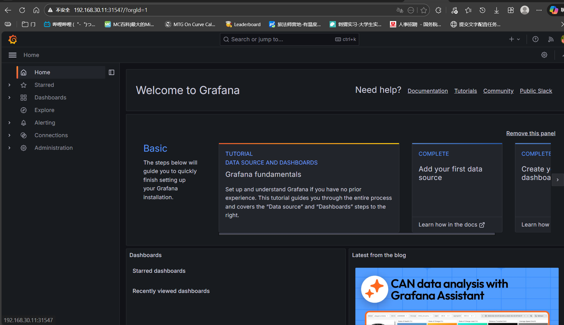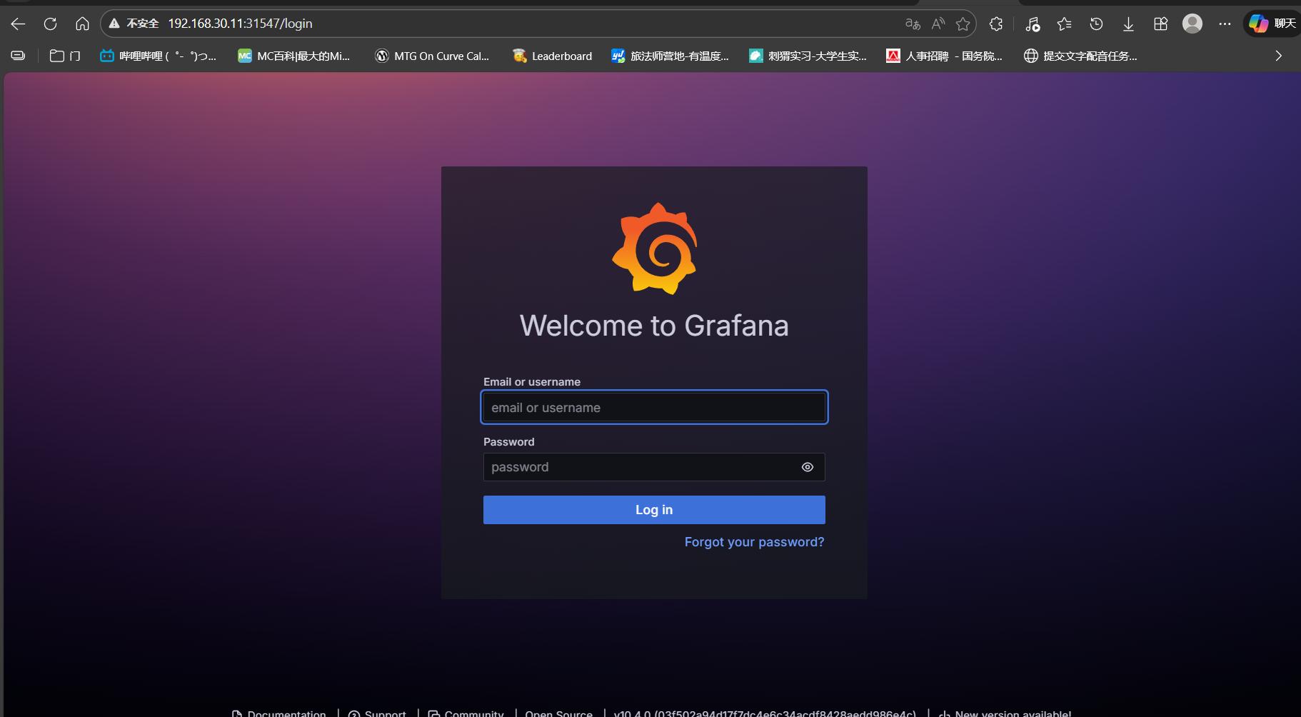 登录Grafana Grafana的默认用户名是admin 密码是prom-operator