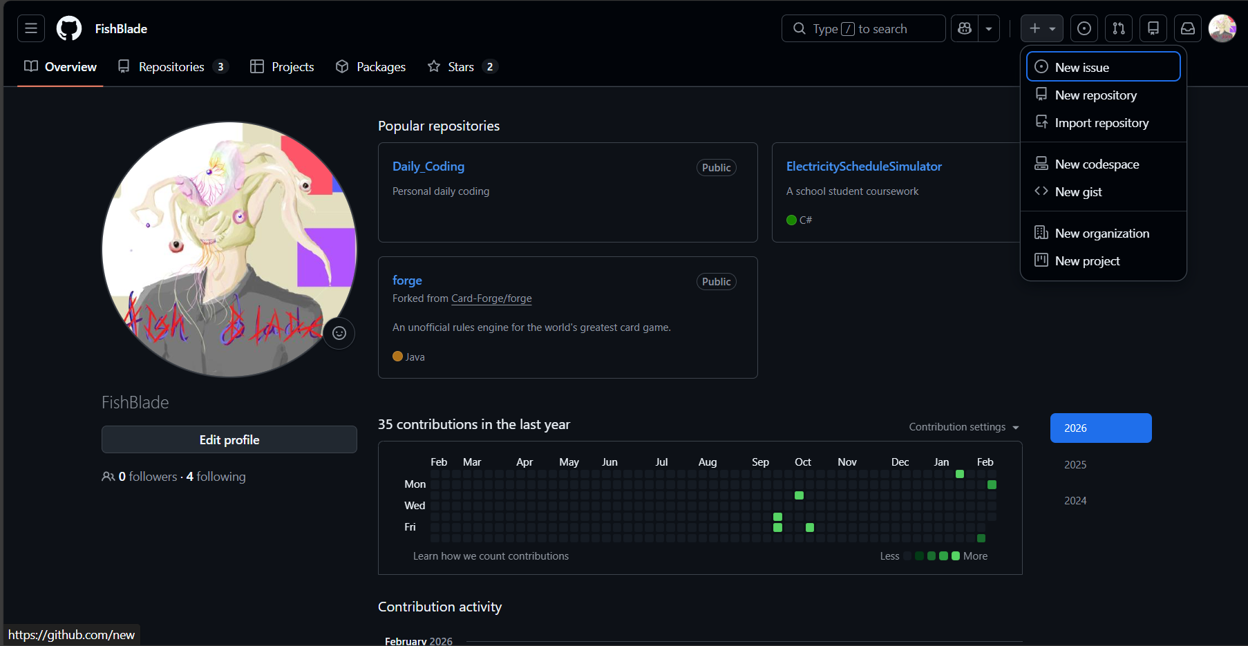 1.在github上创建一个空仓库,在GitHub主页点击右上角的加号,选择第二项 New repository