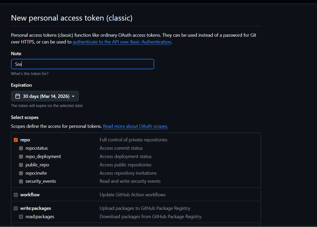 填写密钥的备注,有效期,权限(这里勾选第一个repo就可以了),滑倒最下面点创建
