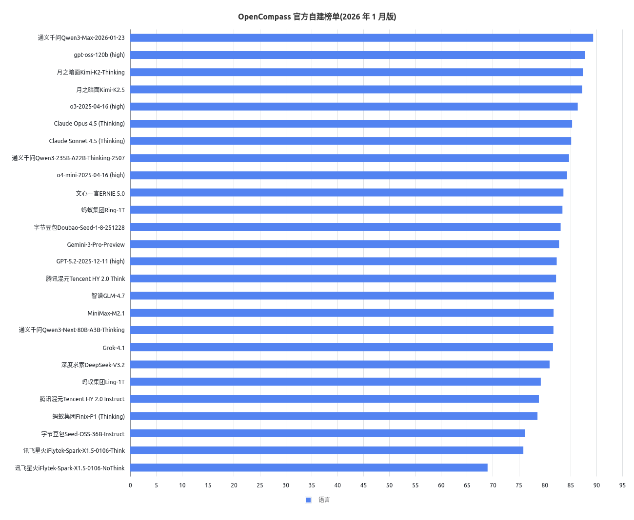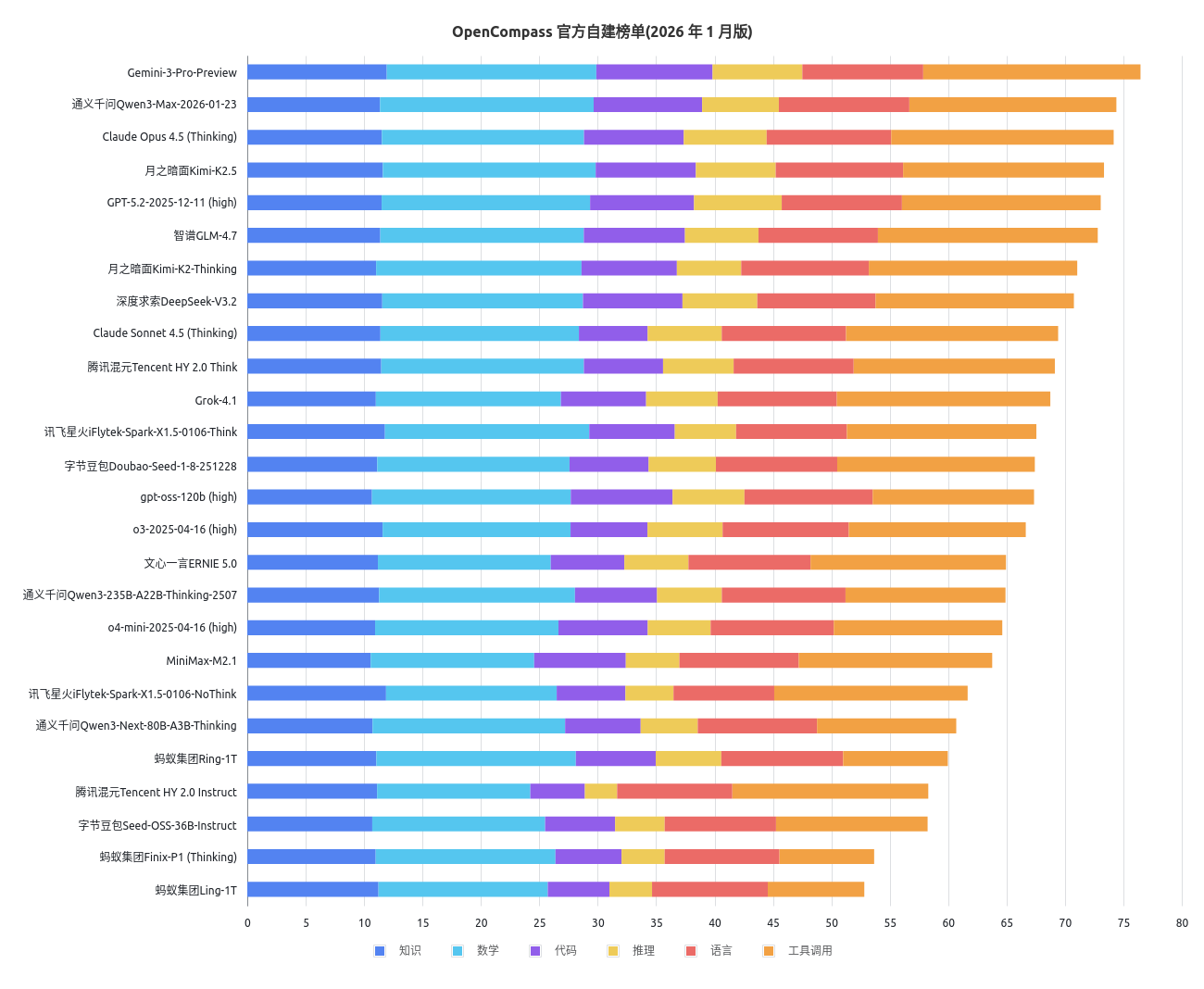 新增模型:GPT-5.2-2025-12-11 (high)、Gemini-3-Pro-Preview、Claude Opus 4.5 (Thinking)、Grok-4.1、Doubao-Seed-1-8-251228、Qwen3-Max-2026-01-23、iFlytek-Spark-X1.5-0106、ERNIE 5.0、Tencent HY 2.0 Think、Tencent HY 2.0 Instruct等闭源模型,以及DeepSeek-V3.2、MiniMax-M2.1、GLM-4.7、Kimi-K2.5、Kimi-K2-Thinking、Ring-1T等开源模型。