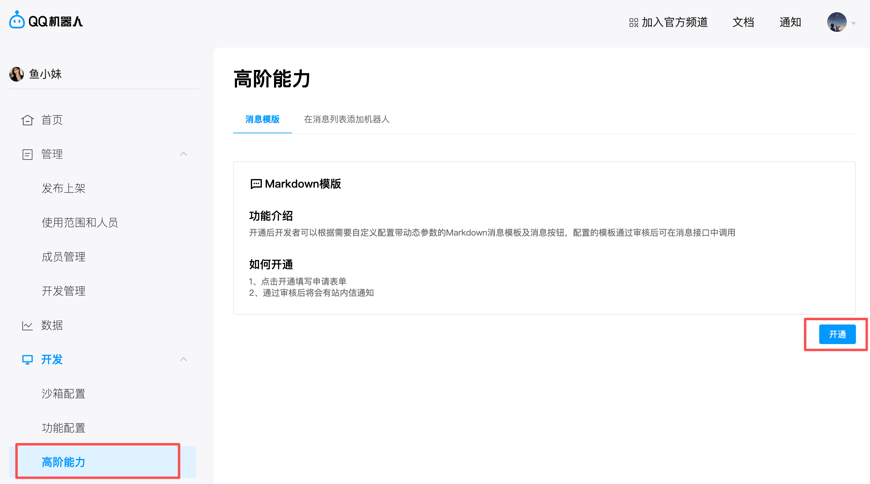 如果需要的话,还可以申请 Markdown 模板能力: