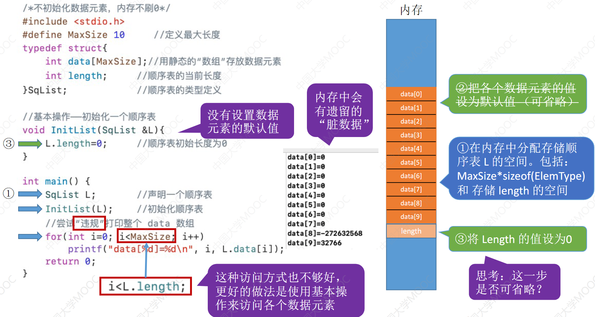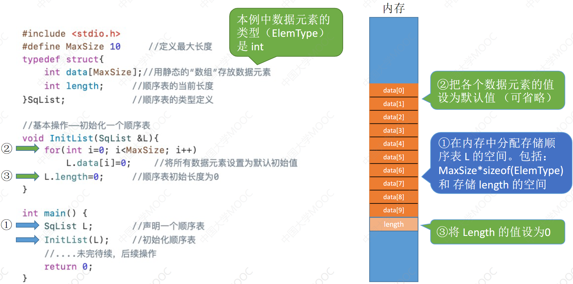 InitList(&L):初始化表。构造一个空的线性表L,分配内存空间。
