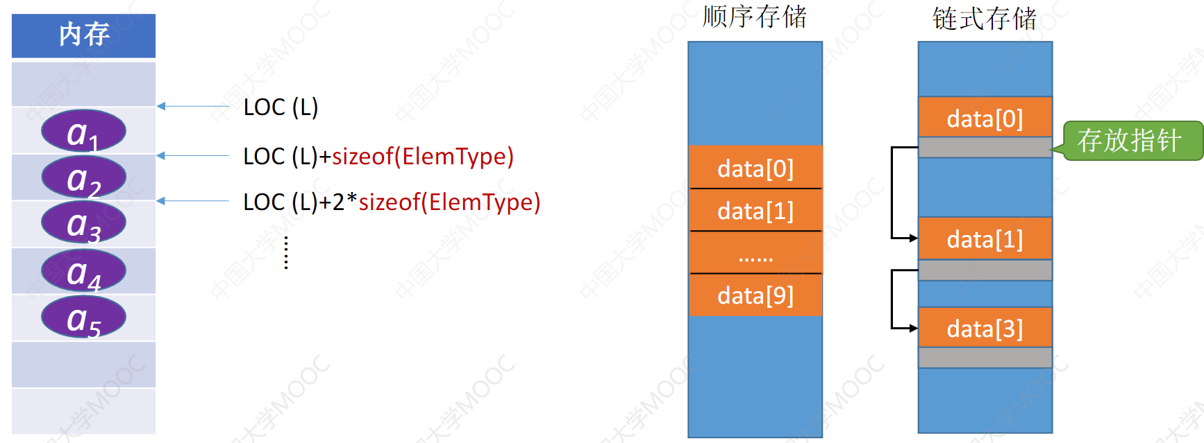 注:数据结构三要素——逻辑结构、数据的运算、存储结构(物理结构)。存储结构不同,运算的实现方式不同