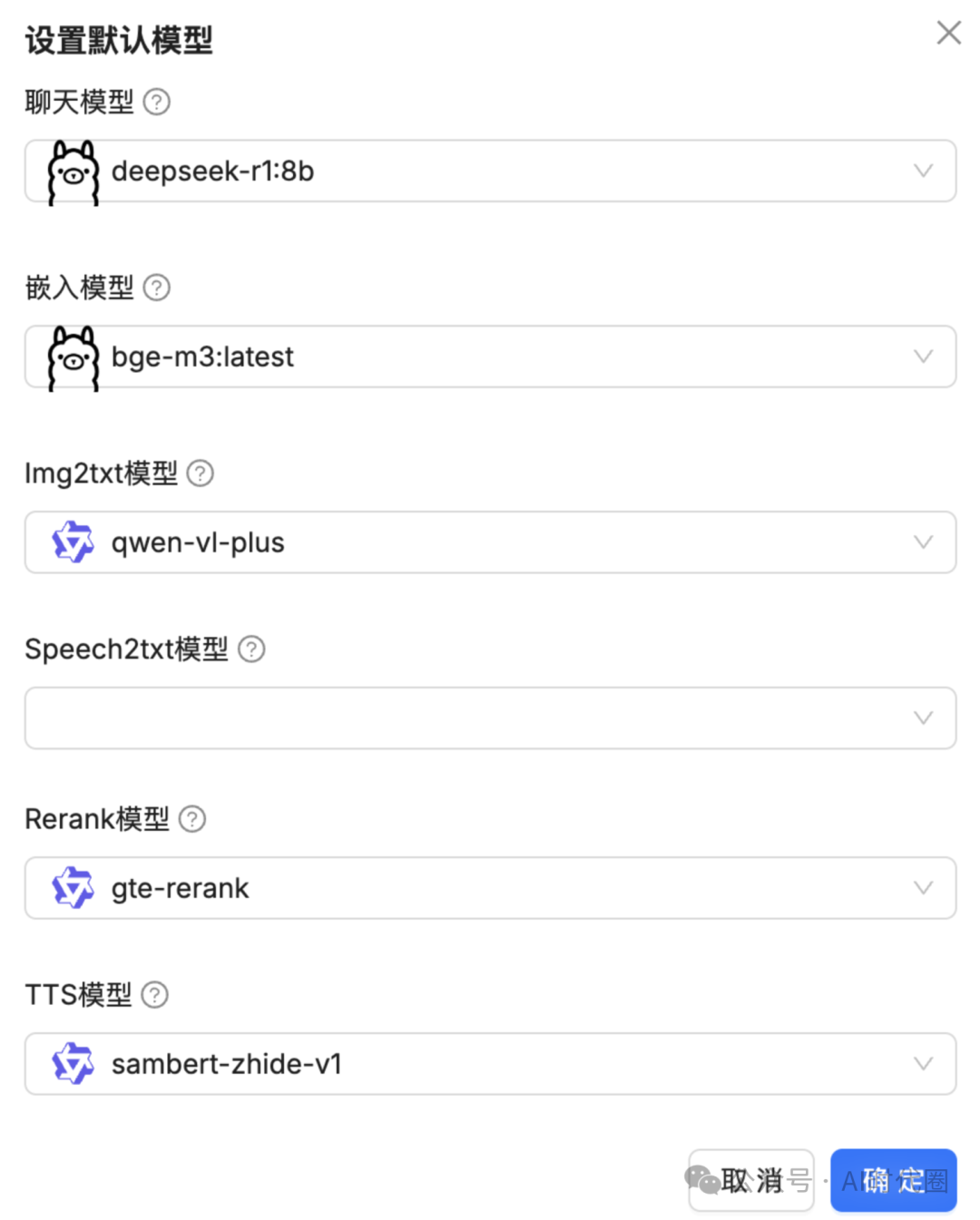 在【系统模型设置】中配置聊天模型和嵌入模型为我们刚刚添加的模型: