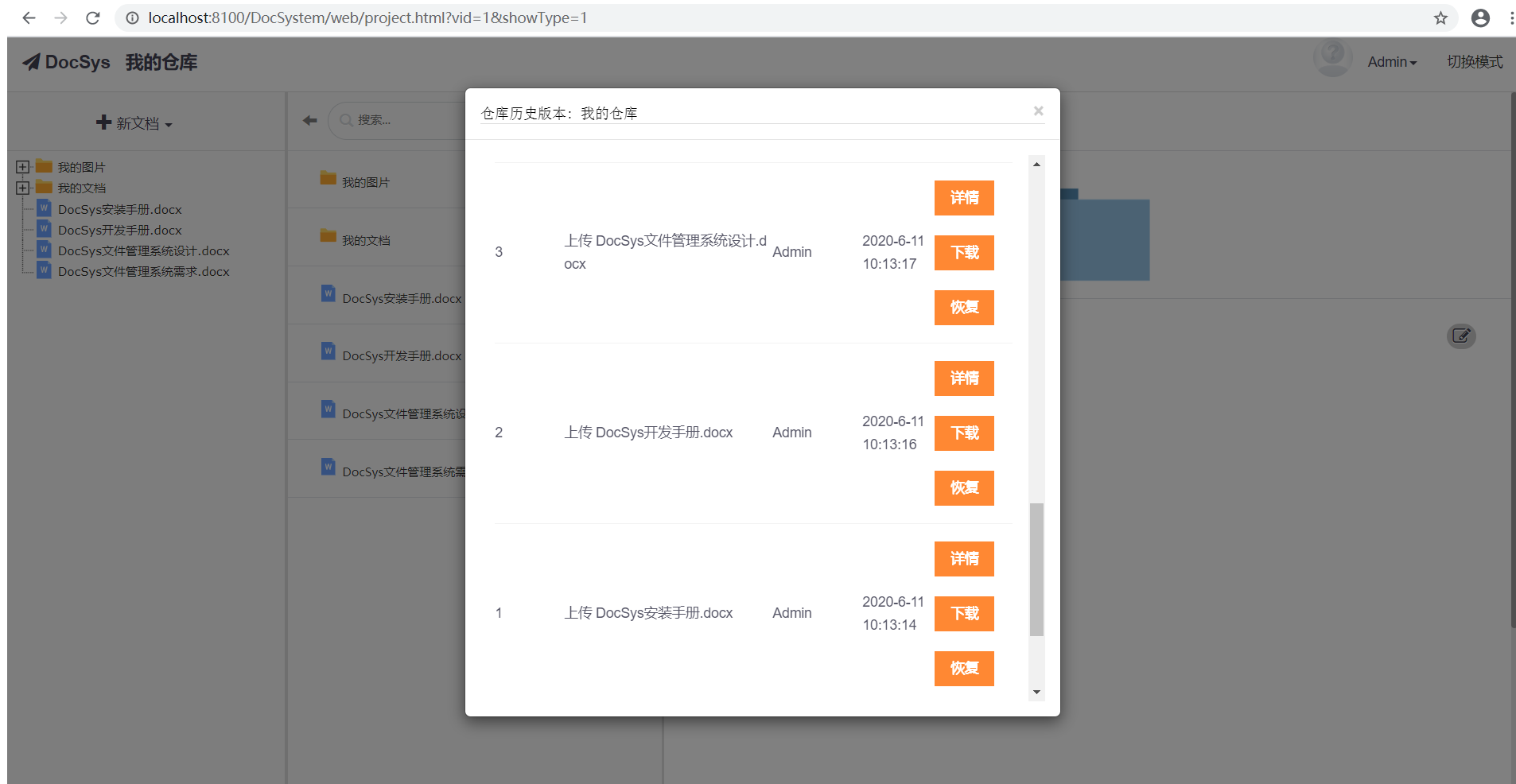 历史版本:采用目前最流行的SVN和GIT版本仓库,支持增量历史版本管理,支持脱离MxsDoc系统进行访问