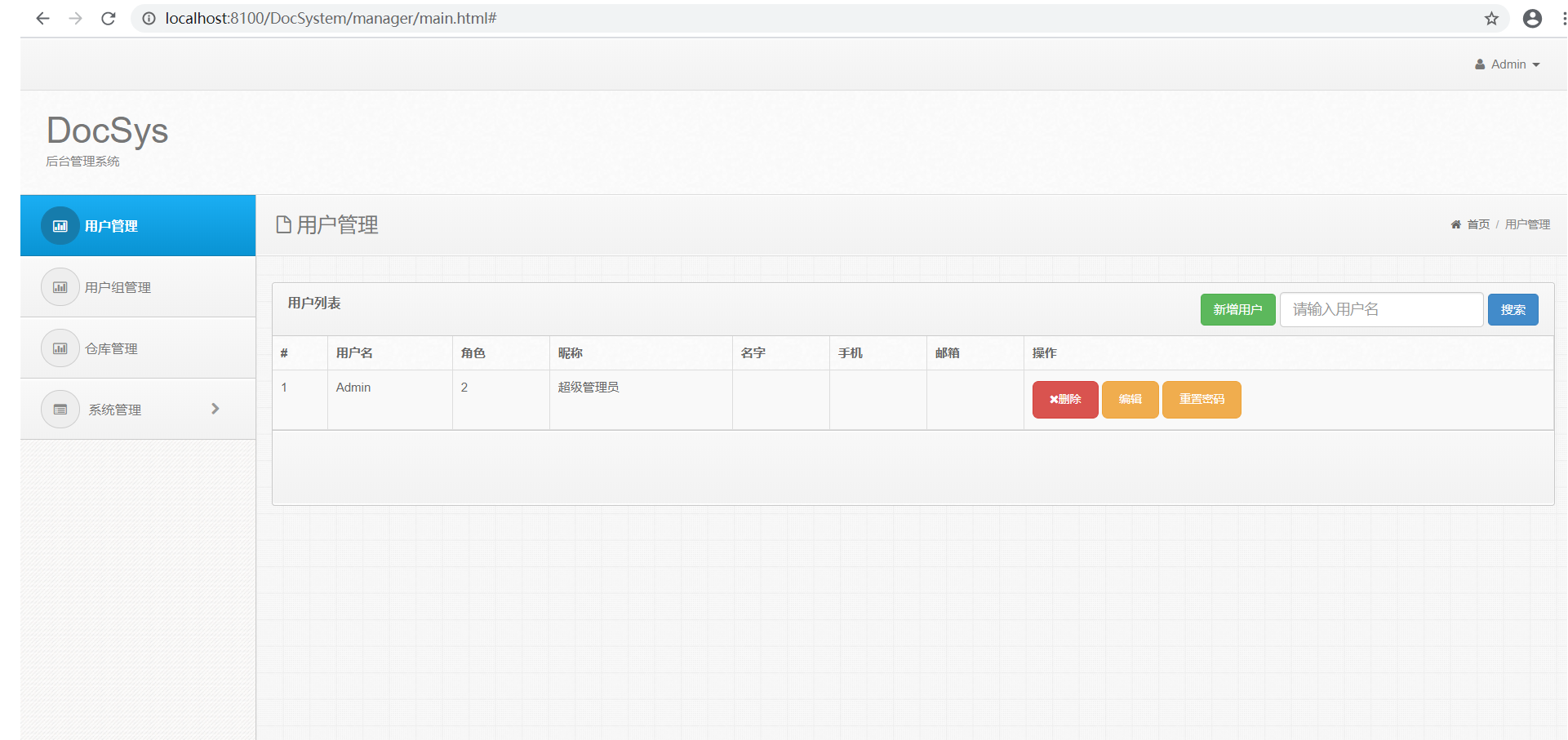 后台管理:支持用户管理、用户组管理、仓库管理、系统管理