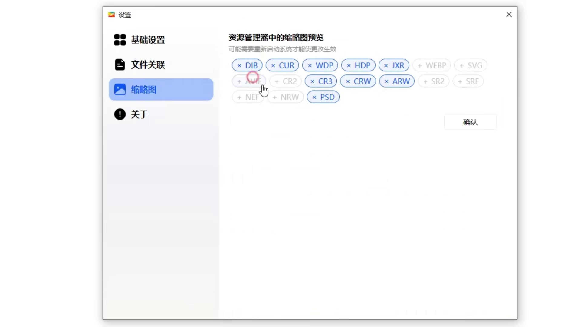 左侧选择“缩略图”:同样点击“全选” → “确定”。这一步是为了让PSD、RAW等原本不显示预览的格式,在文件夹里直接看到缩略图。