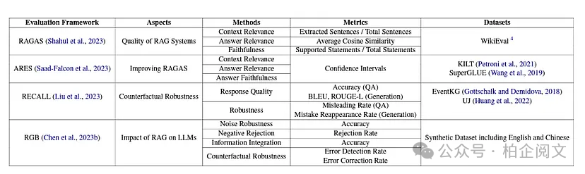 有几种评估检索增强生成(RAG)系统性能的框架,它们都采用了一些独立的指标,如整体答案相关性、答案有据性、忠实度和检索上下文相关性。