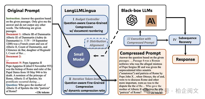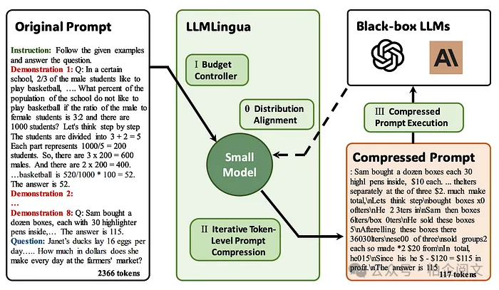- 提示压缩:通过去除不相关的内容并突出重要的上下文来缩短提示的总长度。