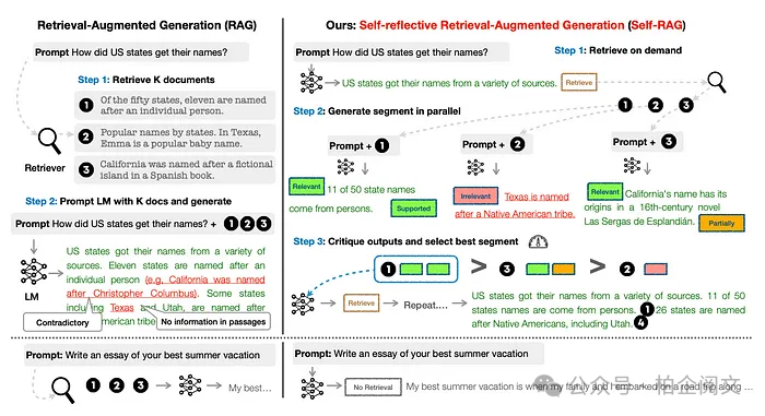 Self-RAG提供了一种策略,在可定制的解码算法中融入反思令牌。这种技术允许根据特定任务动态调整模型的检索和生成行为,有助于生成更通用的回复。根据需求,这种方法可以针对准确性或创造性进行调整,在生成满足不同需求的输出时提供灵活性。