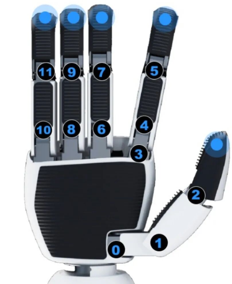 自由度配置:配备12个全主动、全直驱自由度,其中大拇指与食指各3个自由度,其余三根手指各2个自由度,食指额外增设±15°侧摆自由度,12个独立自由度完全解耦,可灵活完成各类精细操作;