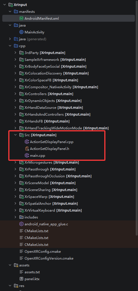 修改的主力位置位于xrinput的src下的main.cpp,工程中的位置是(必须要Sync成功之后才会出现):