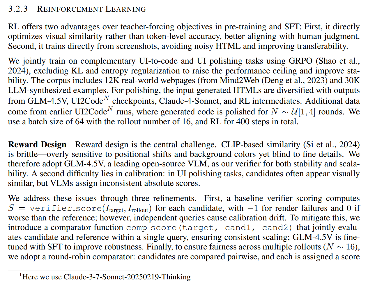 RL优点:优化视觉相似度,接近人类判断;用截图训练,避免噪声。