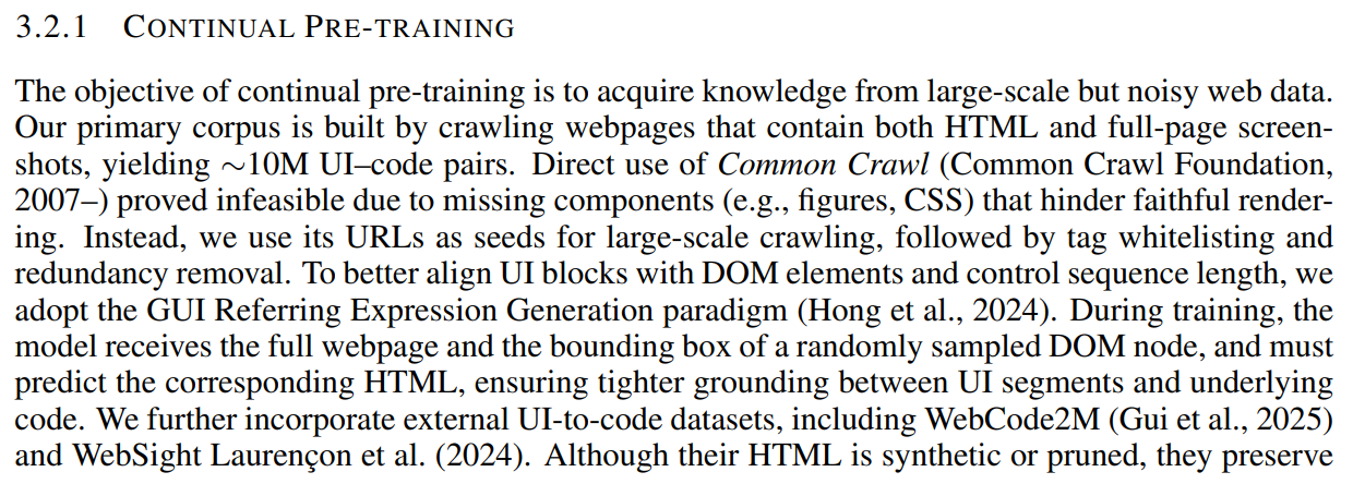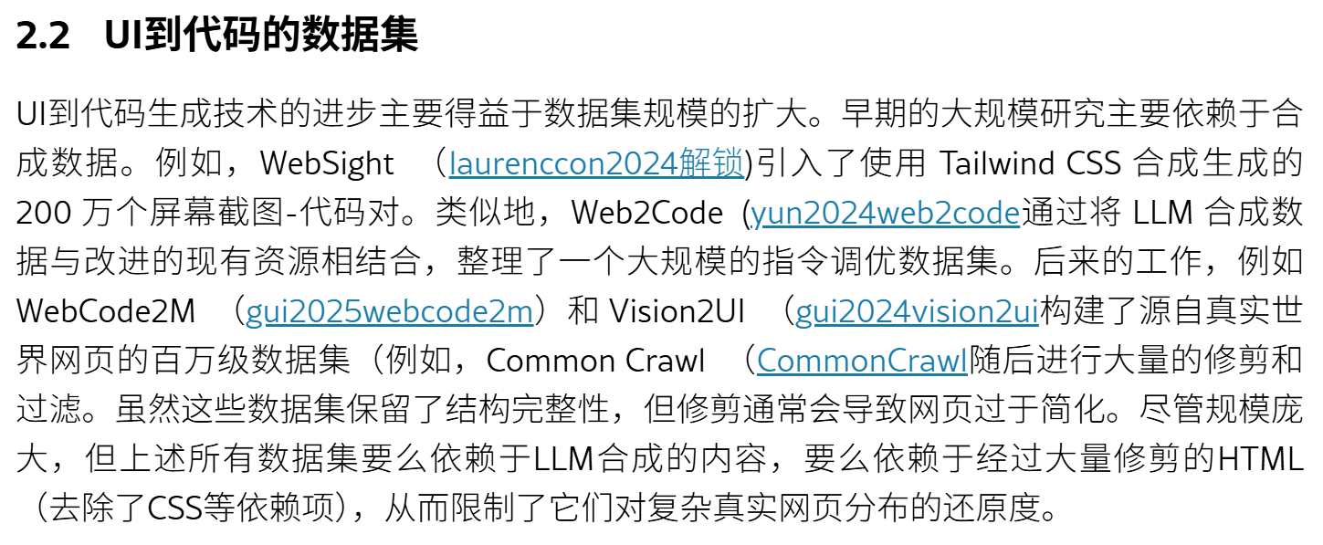 - Web2Code:改善管道,但依赖LLM合成的HTML