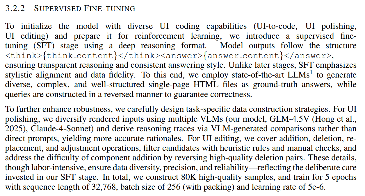 鲁棒性,特定任务的数据构建策略,用 多个虚拟线性模型(VLM)(我们的模型、GLM-4.5V 和 Claude-4-Sonnet)来多样化渲染 输入,通过VLM的结果来推到推理轨迹。