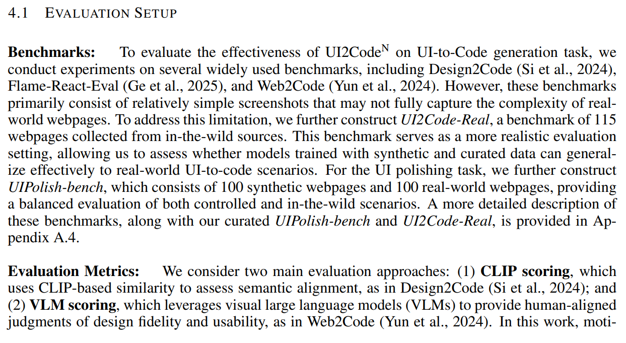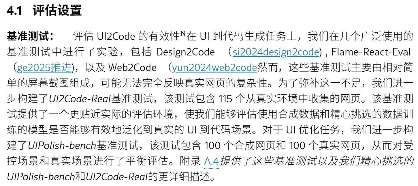 1. 基准测试:构建了UI2Code-Real基准测试,含115 个真实网页