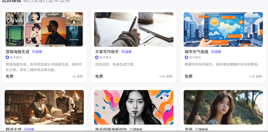 智能体中心热门智能体丰富多样,有官方打造和个人开发者贡献的,紧贴时事热点(如高考志愿填报助手),分类涵盖工具类、娱乐类、生活类等多个领域,满足不同用户多样化需求。