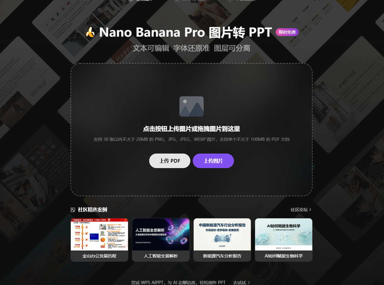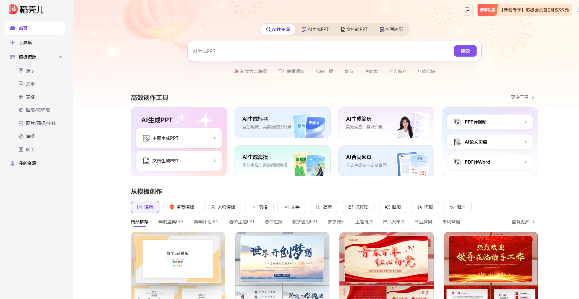 PPT一键美化: 它可以根据文字内容自动匹配符合职业审美的模板,并对逻辑混乱的页面进行重组建议。