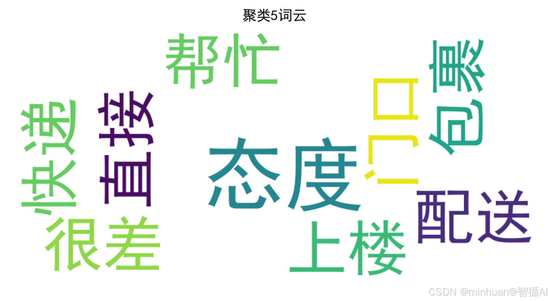 解释:此聚类反映了配送员在服务态度上的显著差异,一条评论表达了对快递员的不满,而另一条则表达了满意。