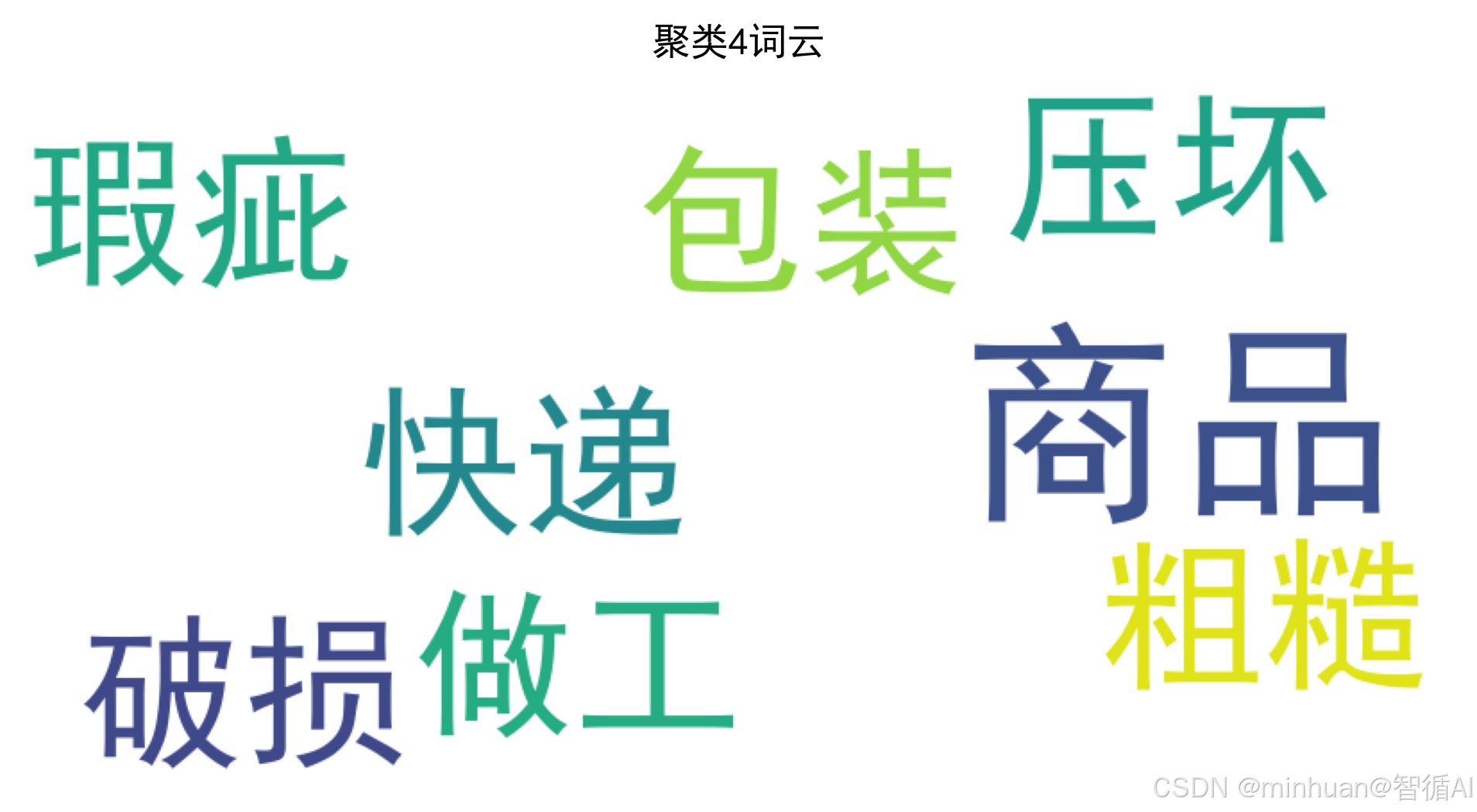 解释:该聚类的核心评论集中在商品存在质量和做工方面的问题,包括商品有瑕疵和做工粗糙,以及快递包装破损导致商品损坏。
