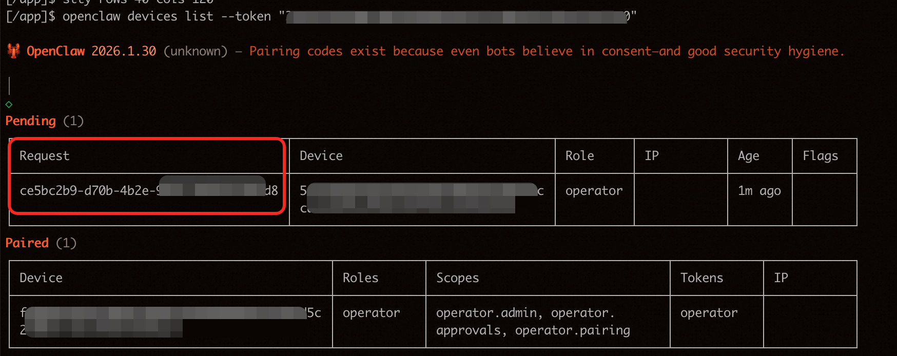 openclaw devices list --token "<GATEWAY_AUTH_TOKEN>"