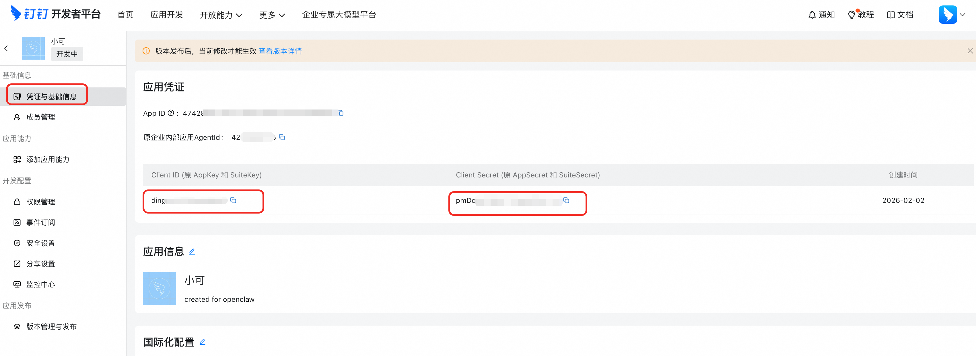 - 进入钉钉开发者后台,找到您的应用,点击进入详情页。