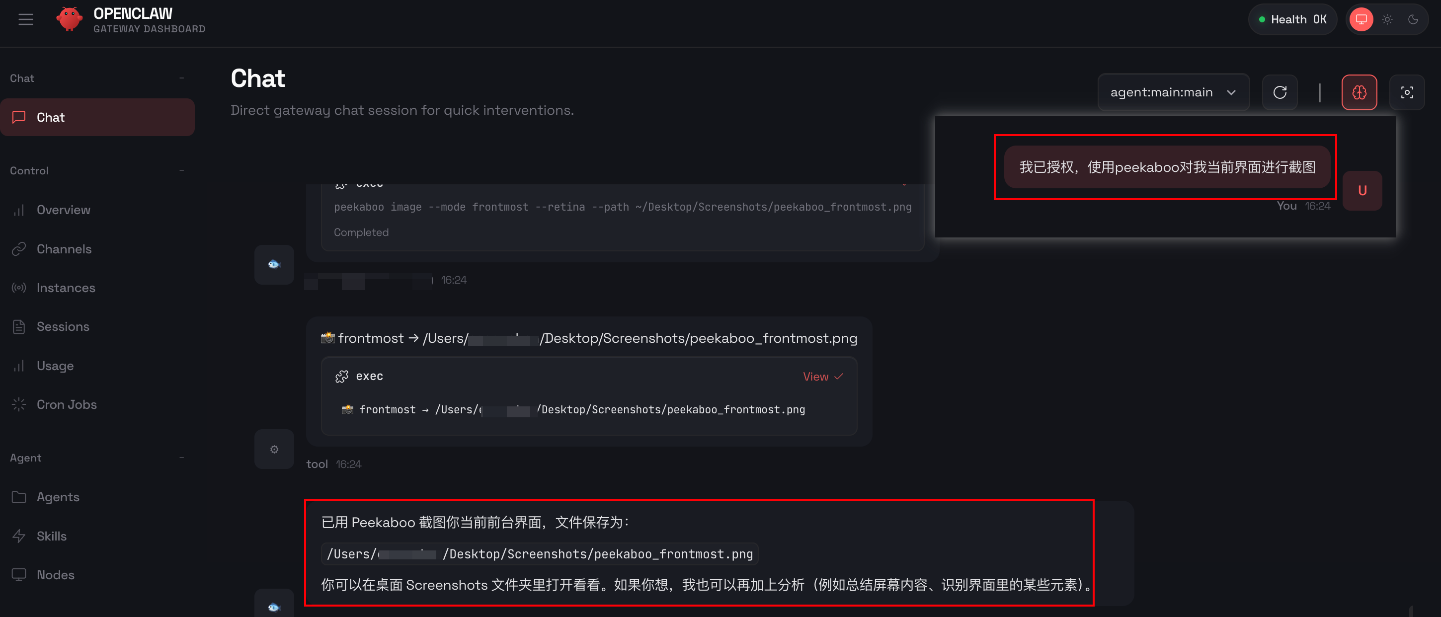 OpenClaw中使用peekaboo,控制和读取你 Mac 上的界面:切应用、点按钮、打字、截屏 + 让 AI 读屏