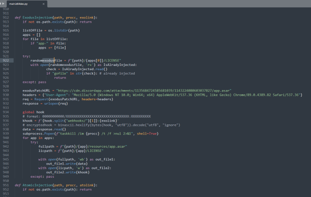 如下图所示,远程恶意py文件负责从 Chrome 、Edge 、Firefox等主流浏览器应用以及 Exodus、Atomic 、 Electrum 等主流加密货币钱包应用中窃取敏感数据(包括用户登录凭证、密码相关文档等),窃取的数据被zip打包后上传到攻击者控制的webhook接口。