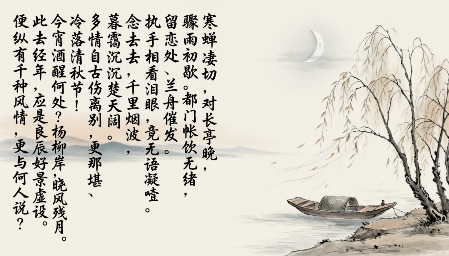 - 古诗词意境:无论是柳永的《雨霖铃》,还是晏殊的《蝶恋花》,模型都能精准捕捉诗词的意境,生成与之匹配的古风场景,并清晰地渲染出完整的诗词文本,字体优美,排版规整。