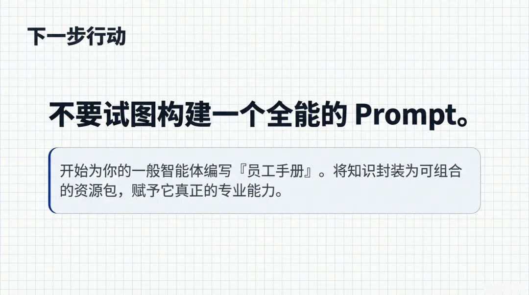 开始为你的一般智能体编写“员工手册”吧。将知识封装为可组合的资源包,赋予它真正的专业能力 。这才是玩转 AI 的终极姿势。