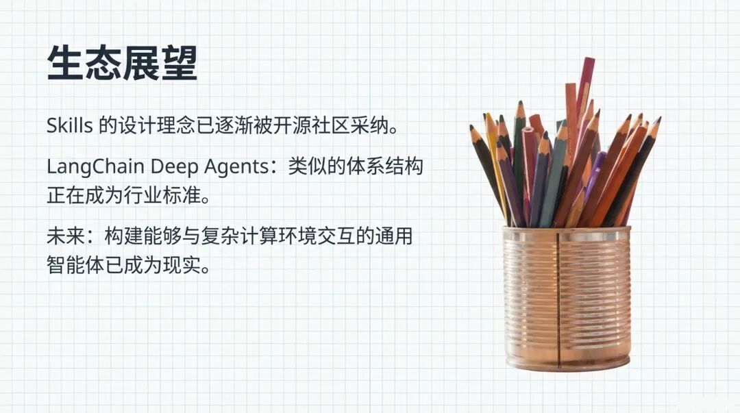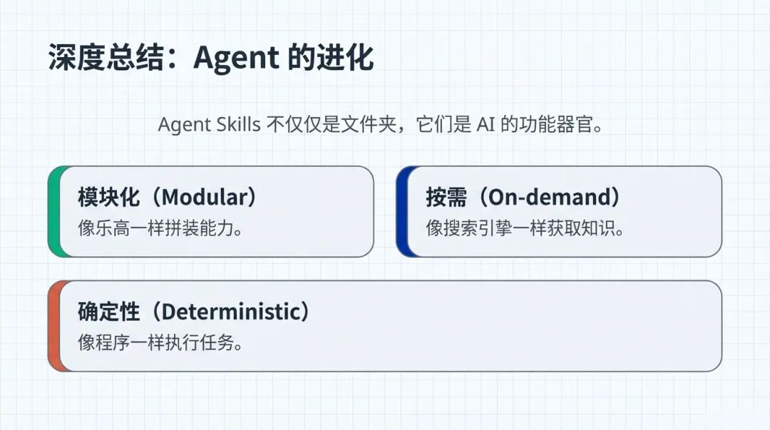 讲到这,大家应该感觉到了,Agent Skills 绝不仅仅是建几个文件夹那么简单。它代表了 AI 的进化 。