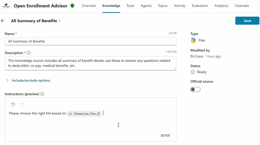 在Copilot Studio中可以对agent的knowledge source进行更多的设定了。