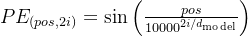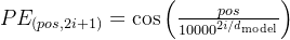 pe[i+1] = np.cos(position / (10000**(2*i/d_model)))