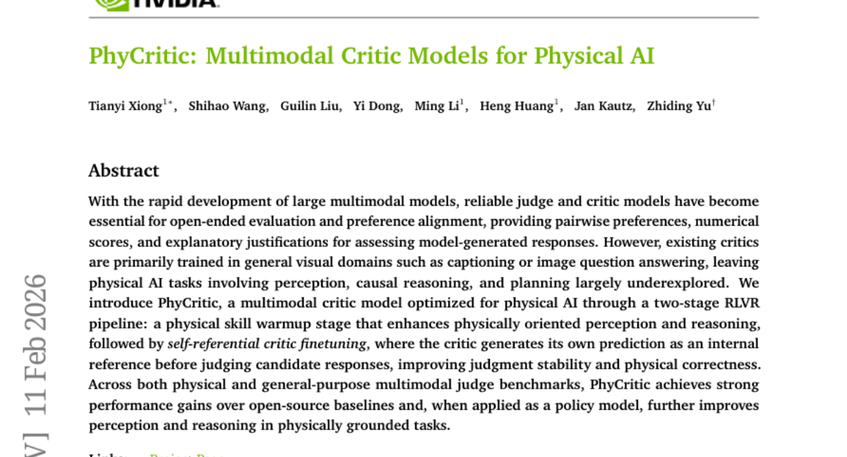 当我们看到一个机器人试图抓取杯子却反复失败时,或者看到自动驾驶汽车做出了危险的决策时,我们很容易判断出这些行为是错误的。但是,让人工智能系统具备这样的判断能力却是一项极其复杂的挑战。最近,由NVIDIA公司联合马里兰大学帕克分校等机构的研究团队开发了一个名为PhyCritic的新系统,这项发表于2026年2月的研究(论文编号arXiv:2602.11124v1)首次让AI具备了像物理学家一样评判和理解物理世界的能力。