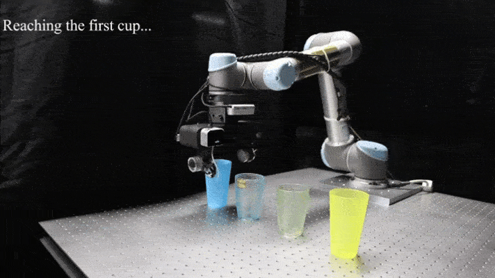 如果机器人同时触摸两个物体,DOVE能找出它们的不同:“两个物体颜色和温度相近,纹理相似,但材质不同(一个是塑料,一个是金属),因此是不同物体”。这
