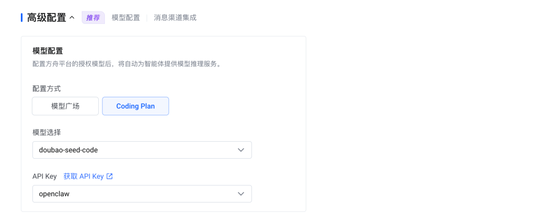 如果没有开通方舟Coding Plan,可以先开通并创建API Key