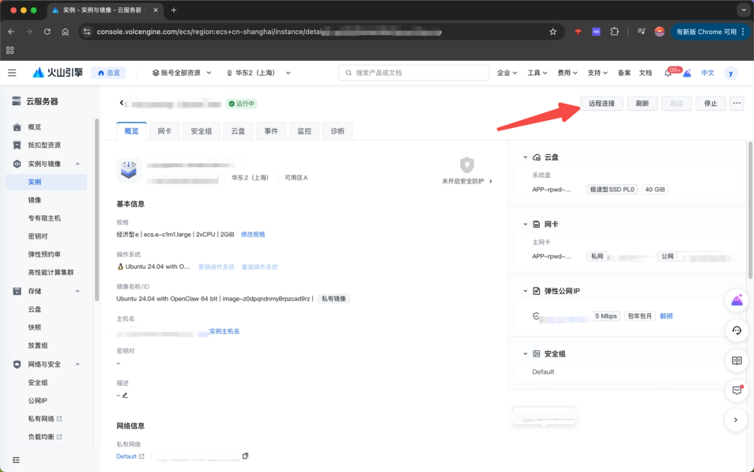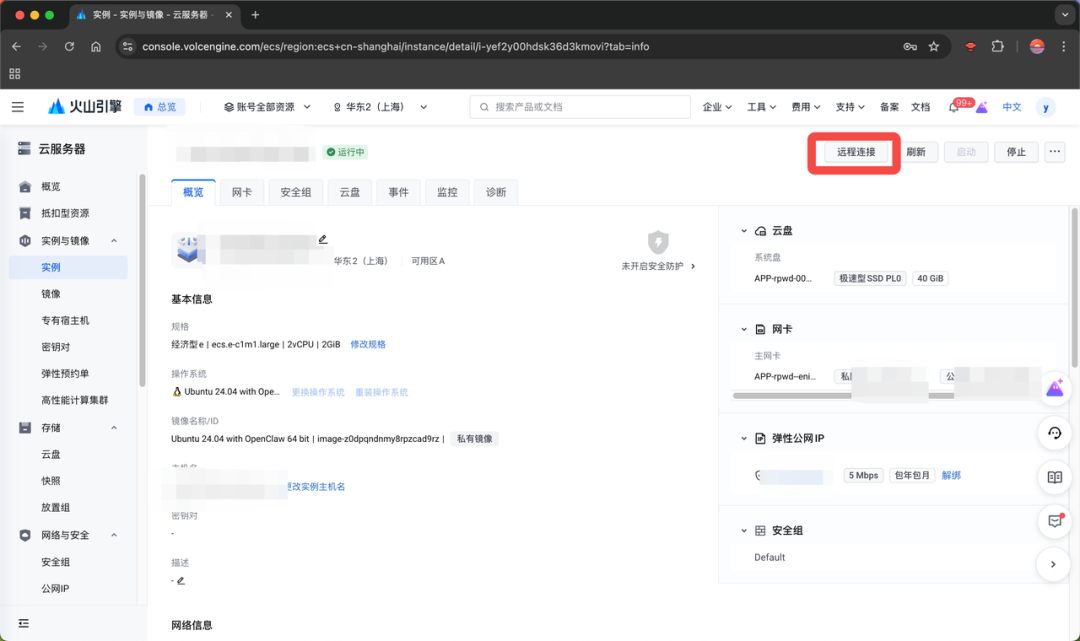 开通成功,后续也可以通过远程连接ECS Terminal快速修改模型和飞书APP的配置: