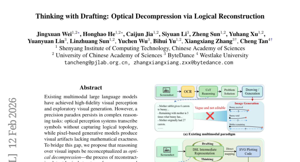 为了解决这个问题,研究团队提出了一个巧妙的解决方案,他们称之为"思维与绘图"(Thinking with Drafting,简称TwD)。这个方法的核心思想是将AI的视觉理解过程重新定义为"光学解压缩"——就像解压缩文件一样,从压缩的视觉信息中重建出完整的逻辑结构。