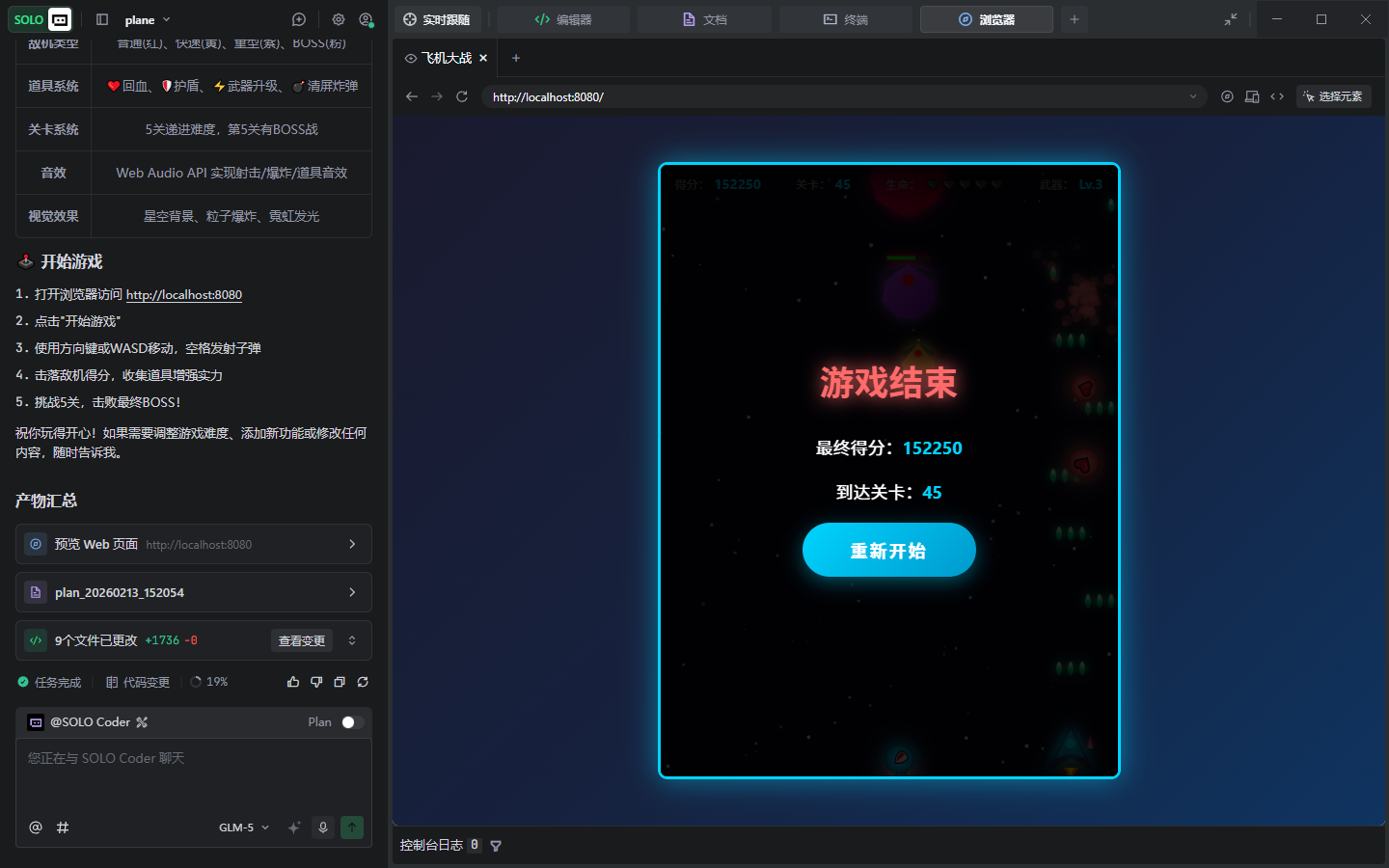 - 在侧边栏继续与 AI 对话,迭代优化你的项目