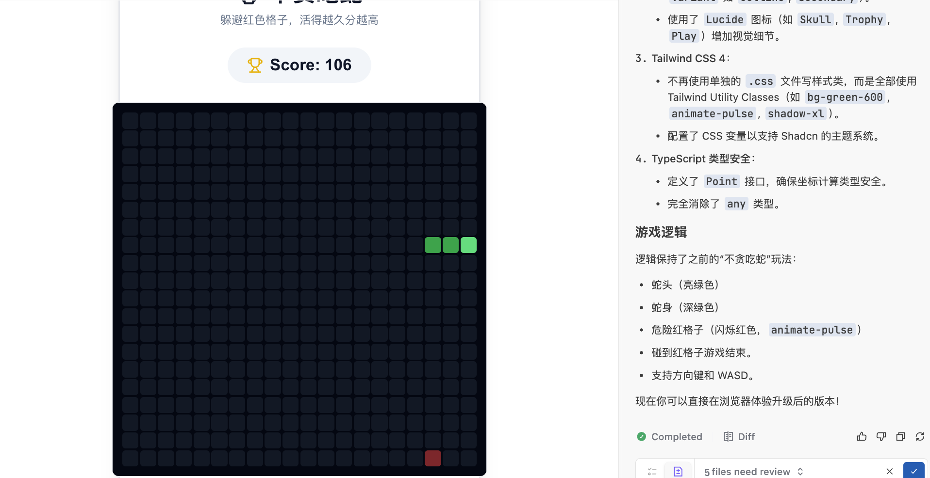 (可选)参考 z.ai 架构修改贪吃蛇结果