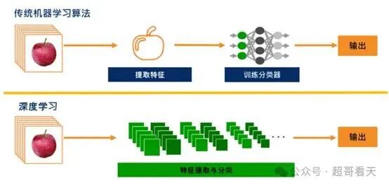 传统方法(如SVM):需要“人工特征工程”,人手动提取颜色、纹理、边缘等特征;模型本身不具备“理解”能力,只是“在已知特征上分类”;泛化能力弱,易受干扰。