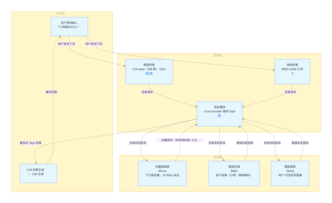 - 存储层:记忆的物理载体,根据数据类型选择合适存储方案。如文本数据可存储在普通文件系统或数据库中,向量数据存储在向量数据库。