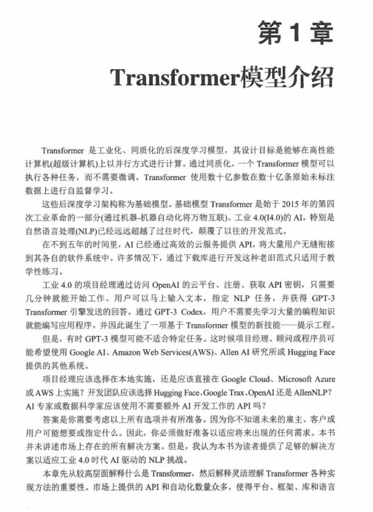 书中在介绍BERT、RoBERTa、T5和GPT-3等流行模型之前,先详细讲解了Transformer的架构,为你的学习打下坚实的基础。 还展示了如何将Transformer应用于各种场景,如文本摘要、图像标注、问答、情感分析和假新闻分析等。如果你对这些主题感兴趣,这本书绝对值得一读!