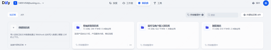 通过DIFY整合集团各类型知识(产品介绍、运维知识、管理规范、规章制度等),支持跨团队共享;查询耗时从5分钟缩短至≤1分钟(效率提升80%+),减少员工检索时间成本