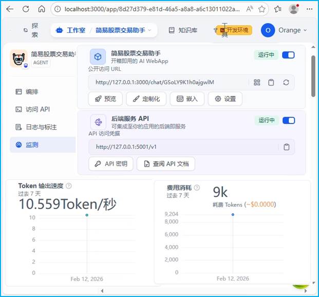 图13 Dify平台Agent应用运行监测组合页面截图