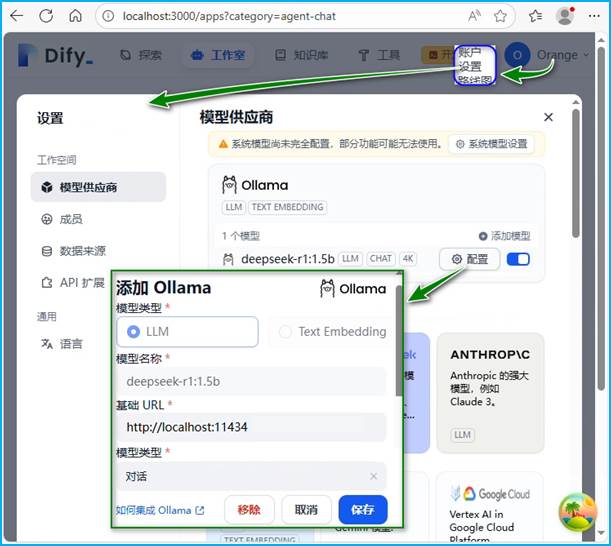 图9 Dify平台LLM模型选用与配置页面截图