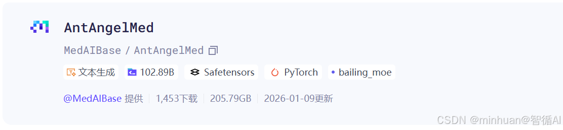 AntAngelMed,蚂蚁・安诊儿医疗大模型,是由浙江省卫生健康信息中心、蚂蚁集团与浙江省安诊儿医学人工智能科技有限公司联合研发的超大规模开源医疗语言模型,于2026年1月7日正式发布开源。作为目前全球参数量最大、性能最强的开源医疗大模型之一,它以 1028.9 亿总参数、仅需激活 61 亿参数即可高效运行的特性,重新定义了 AI 医疗的专业边界与效率标准。