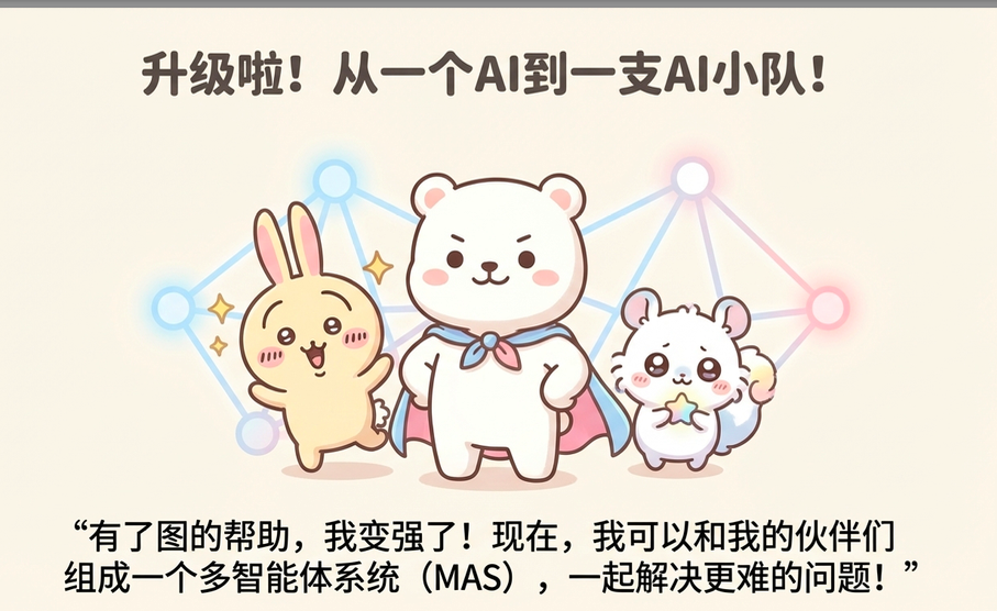 实际开发中,很多复杂任务需要多个Agent协同完成,图结构能搭建灵活的协作拓扑,让不同能力的Agent各司其职、高效配合。