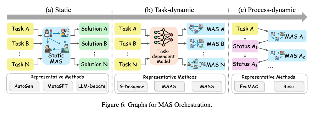 核心目标是通过图拓扑设计,让不同能力的 agent 形成高效协作网络,按拓扑演进分为三类(开发者可按需选择适配):