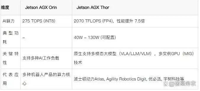 NVIDIA的Jetson AGX系列,特别是Jetson AGX Orin和最新发布的Jetson AGX Thor,正在为人形机器人提供强大的“大脑”,推动其从实验室走向实际应用。